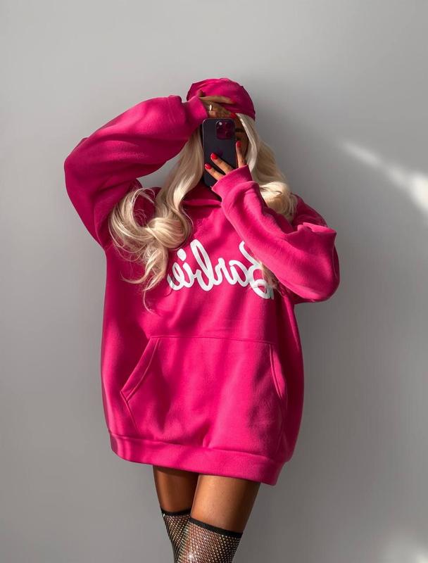 Арт 1530-103 Hi, BARBIE ФОТО Реал Худи Ткань: трехнитка на флисе Цвета: розовый, белый Размеры: 42-46 Универсал Трендовый худи оверсайз с капюшоном для тебя Тепленькая, приятная ткань к телу. Качественная накатка. Спереди кармашек, в котором возможно прятать ручки.