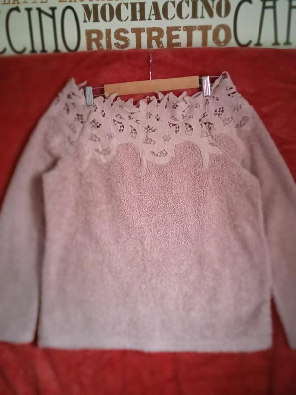 Крута цікава оригінальна худі Тедді з декольте декорирована тканиною бавовняне кружево пудрового кольору. Довжина 60 Довжина рукава від плеча 60 НпОГ 56 НпОС 56 Стан ідеальний