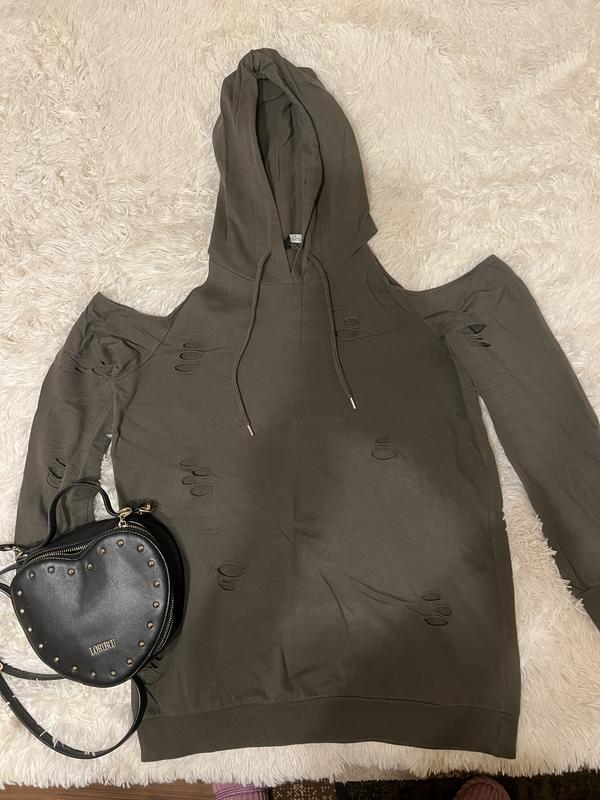 Кофта, худи, свитшот, размер S-M Цвет олива, с открытыми плечами, состояние идеальное, одела 3 раза