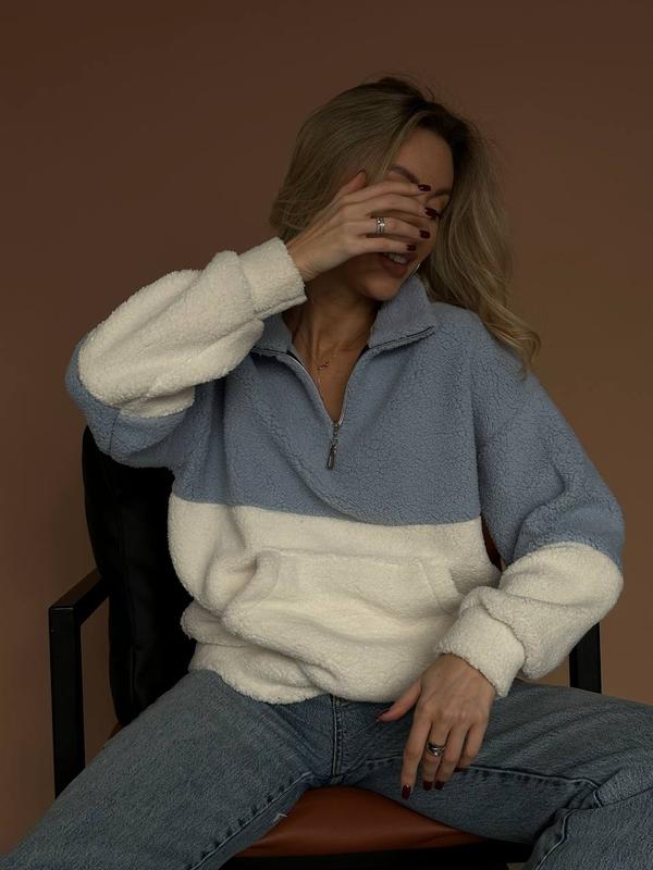 Худі ▪️Тканина: мʼякий барашек ▪️Кольори: чорний, блакитний, пудра ▪️Розмір:S-L(Універсал) Параметри виробу: Довжина виробу-60 Довжина рукава-69 ОГ-110 ОТ-100 📌Затишний, дуже мʼякий та приємний до тіла худі. На блискавці, двокольоровий🔥Якісна тканина🔝