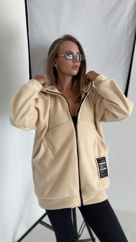 🍁 Осенняя кофта на молнии и с капюшоном В наличии ❤️ Цена 950 грн ▫️Модель: 405 ▫️Тканина: ❗️Турецкий Полор Флис, (плотность 280) ▫️Размер: универсальный 42-46 ◽️Цвет: бежевый, серый, графит. 🥰Флисовый оверсайз батник, очень мягкий и приятный к телу.бот