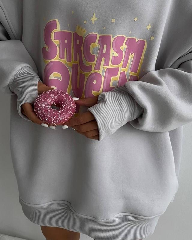Арт 1493-0630 Тканина: триниитка на флісі - пень‘є/рібана-кашкорсе Кольори: молочний, рожевий, сірий Розміри: 42-48 Худі виконаний з мʼякої, якісної тканини Не кашлатиться, не втрачає колір.