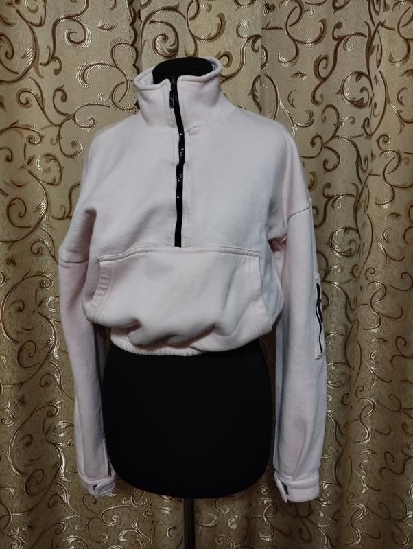 Укороченный худи. Розового цвета. Бренд PrettyLittleThing. Размер S. Флис. 65% полиэстр. 35% котон. На рукавах присутствуют малозаметные пятна. Выводить не пробовала. И бегунок чуточку стерлась краска. Видно на другому фото.