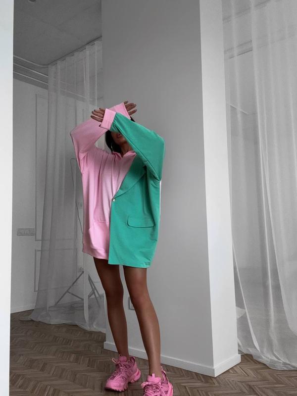 Худі,для самих стильових 🤟🤟🤟 Модель : 326 Тканина : двонитка Розмір : універсальний (42-48) Колір : рожево - бірюзовий 🌈 Заміри Довжина по центру спинки - 75 см Плече(спущене) - 25 см Рукав (спущений) - 55 см Об’єми до 130 см Оздоблення,декоративний ґудзик Зріст моделі на фото 165 см🥰 Ог -80 см🔝 От -63 см🔝 Ос -88 см🔝 Розмір на моделі 42-48