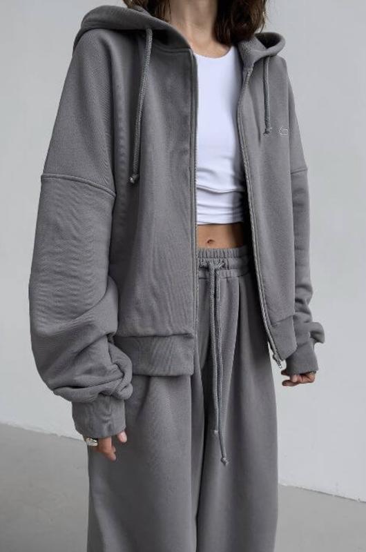 Стильна об’ємна кофта на блискавці з капюшоном, доповнена великими шнурками. Вкорочений крій, логотип та універсальний матеріал речі роблять її абсолютним мастхевом у будь-яку погоду. Чудово поєднується зі спортивними штанами з комплекту, але так само пасує до речей контрастного стилю — лосинами, які обтягують, спідницями та широкими джинсами. Підкреслює фігуру, тому з легкістю стане улюбленою річчю у гардеробі Виготовлена з високоякісного турецького трикотажу. Бавовна, що входить в склад, забезпечує комфорт та робить тканину приємною до тіла. А поліестер у складі матеріалу гарантує довговічність у носінні: завдяки йому худі не змінює форму та не кошлатиться Зріст на фото 165 см, обхват грудей 84