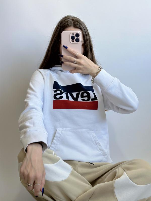 Худі білого кольору, велике лого на все тіло ~розмір XS ~стан 10/10