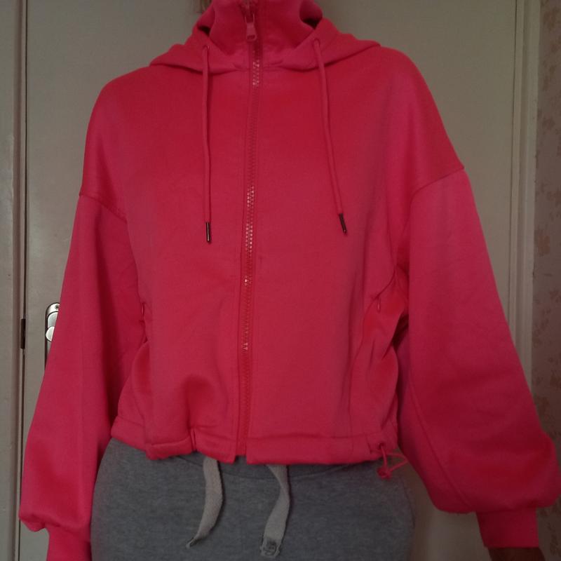 Соп худи ☆женское ☆розового цвета ☆в нормальном состоянии ☆размера S-M ☆укорочене ☆полиэстер + эластан ☆удобная и теплая ☆внизу есть утяжки ☆есть капюшон и воротник ☆из нюансов есть катыши и затяжки (фото прикрепила) За дополнительными фото или замерами пишите в личные