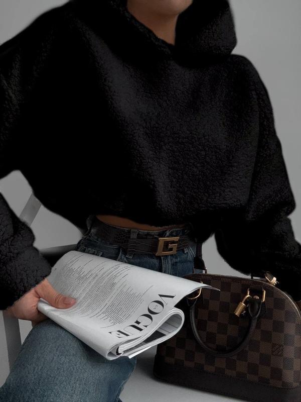 Худі виготовлене з м’якого хутра, що забезпечує тепло та комфорт у прохолодні дні. Доступне в універсальному розмірі 42-46, воно пропонується в трьох стильних кольорах: ніжна пудра, класичний білий і чорний. Ідеально підходить для створення затишного та модного образу.