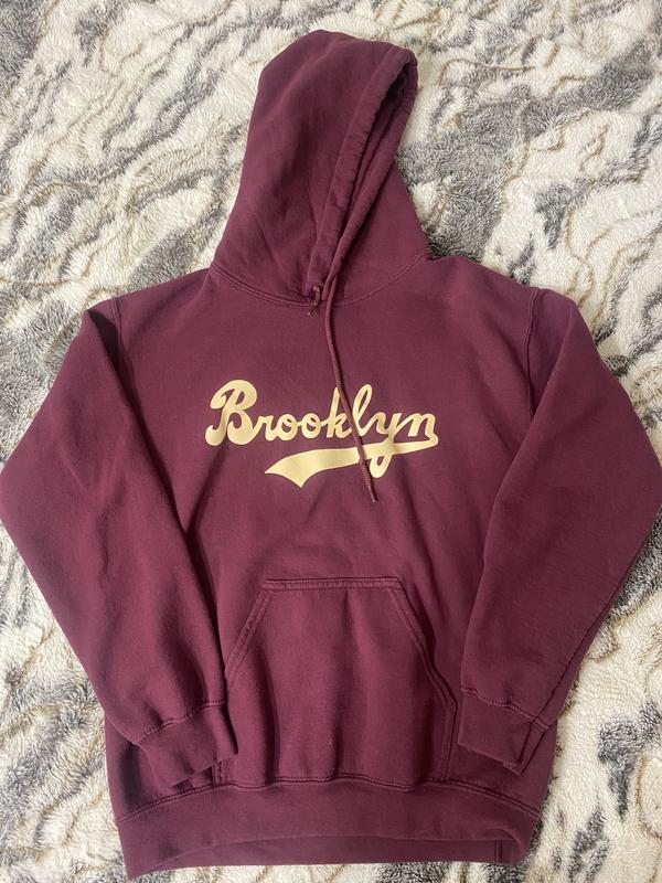 Бордове худі з карманом і надписом «Brooklyn» Довжина 58 см, ширина 54 см, довжина рукава 57 см