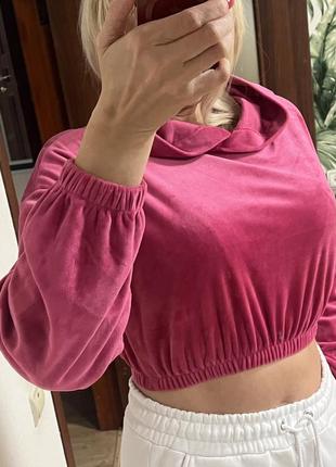 Велюровий кроп-топ , стан нової речі. Без дефектів. Довжина 45 см Рукав від горловини 75см Напівобхват по грудях 60 см ( є чорні велюрові штани, можно додати і буде костюм)