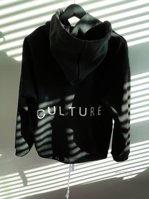 💕ФОТО РЕАЛ✨ХІТ💥 🔸Худі CULTURE ▪️Модель: 1378 ▪️Тканина: турецька трьохнитка на флісі ▪️Розмір: 42-48 (oversize) ▪️Колір : чорний, зелений, рожевий 💬Стильний теплий худі оверсайз з максі написом на спинці💔 Регулюча шнурівка по низу дозволяє носити худі в подовженому варіанті і вкороченому, затягнувши поясок👍🏻 Глибокий капюшон, спущена лінія плеча, манжети із основної тканини. Якісна накатка✅ ЗАМІРИ ВИРОБУ 42/48 Довжина 70 см ОГ 130 см Рукав від ворота 77 см
