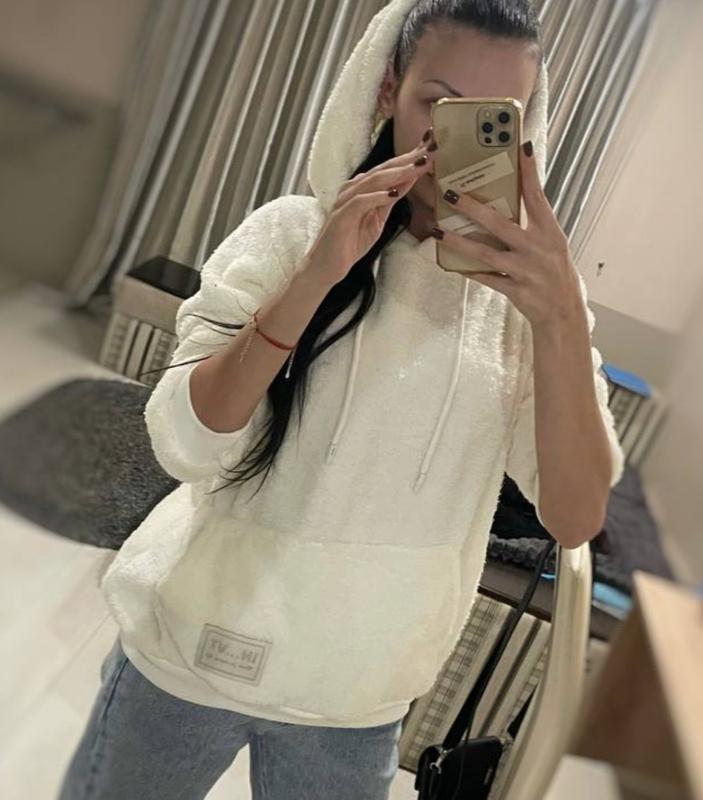 Затишне худі з м'якого плюшевого матеріалу з капюшоном і зручною передньою кишенею-кенгуру. Ідеально для прохолодної погоди та комфортного образу. Вільний крій забезпечує свободу рухів, а універсальний білий колір дозволяє легко поєднувати з будь-яким стилем одягу. Чудовий вибір для повсякденного гардероба
