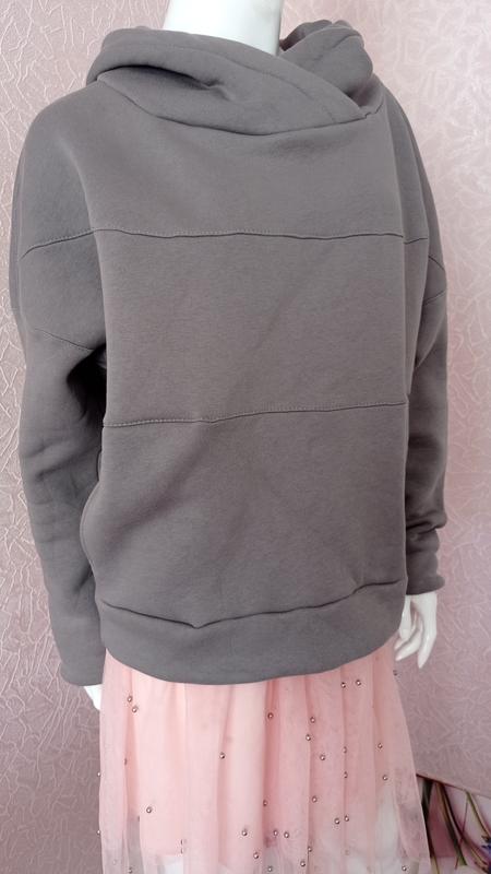 Толстовка худі графітового кольору (колір як на останньому фото), має бічні кармани, утеплена, не кошлатить. Тканина двонитка, м'яка і товстенька. Капюшон подвійний. Стан ідеальний, розмір єдиний, підійде від S до L плече спущене (від горловини 23см), рукав 51 см, груди 60 см, низ 50 см, довжина 62 см