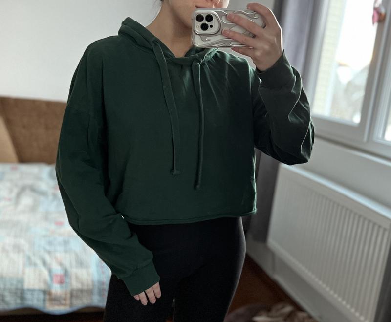 bershka вкорочене зелене худі Вказаний розмір S, підійте теж на M та як оверсайз на XS