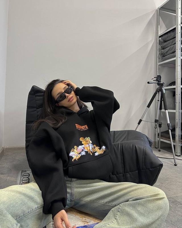 Худі 🔥 💰Ціна: 670 грн 🌏 Тканина: якісна трьохнитка на флісі Розмір: 42-46 (універсальний) Колір: чорний Найкраще рішення для холодної пори року 🔥 стильні худі з трендовою накаткою, тканина дуже мʼяка та приємна до тіла 🫶🏼 Арт 1495-247