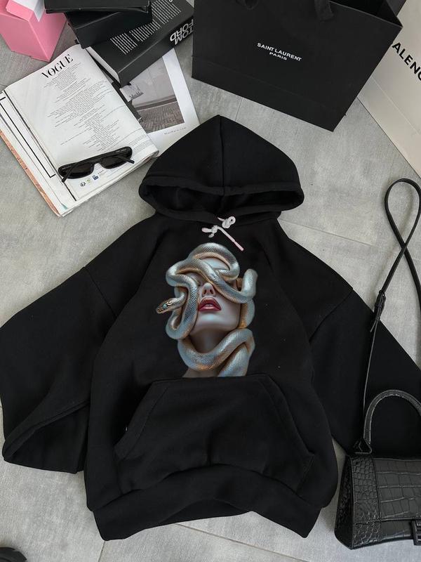 🐍Худі з символом мудрості Мод:734 Тканина: Якісна тринити на флісі Розмір: 42-46 Колір:чорний Якісне виконання Зручний та практичний Ціна: 730 грн.град