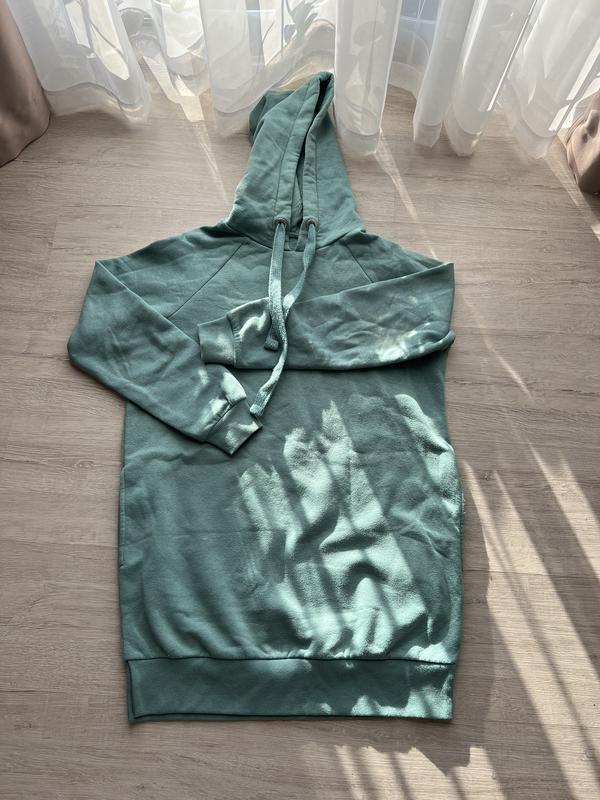 Комфортне худі зеленого кольору з м'якої тканини. Особливості: • Капюшон з регульованими шнурками • Зручна кишеня-кенгуру спереду • Еластичні манжети на рукавах • Подовжена спинка для додаткового комфорту • Універсальний крій для повсякденного носіння Ідеально підходить для прохолодної погоди, домашнього відпочинку або активного дозвілля. Практичний і стильний варіант для базового гардеробу.