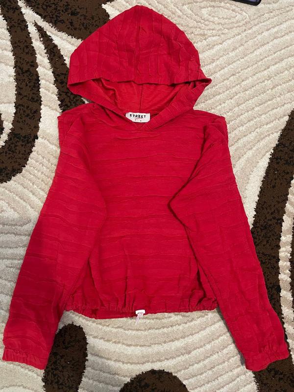 Кофта червона з капюшоном Розмір S Груди 44 Низ на резинці Висота 43 Рукав 54
