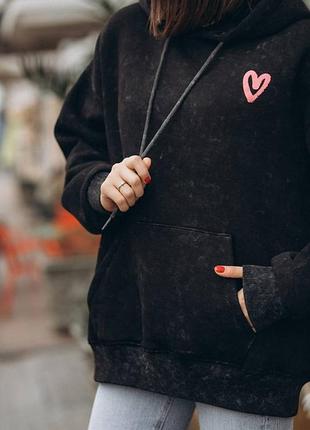 Мега стильный утепленный женский худи «Сердце» в стиле Oversize🖤 Идеальная ткань, идеальный принт, идеальный выбор ✔️ •~•~•~•~•~•~•~•~•~•~•~•~•~ 🖤🖤Цена: 1090 грн •~•~•~•~•~•~•~•~•~•~•~•~• ✔️Модель: 1024 ✔️Производство ТУРЕЧЧИНА 🇹🇷(LUX качества) ✔️Ткань: треххнитка ПЕНЬЕ ВАРЕНКА на мягком ФЛИСИ. ✔️‼️НЕ КАШЛАТИТСЯ, не меняет цвет!!️ Прослужит не один год!!️ ✔️склад тканини: 65% cotton, 35% polyester. ✔️‼️ПОДВІЙНИЙ капюшон‼️ ✔️Цвет: черный ✔️размер: универсальный S-XL •~•~•~•~•~•~•~•~•~•~•~•~•~ ▪️Замеры: Длина 74 см Обхват груди 130 см Длина рукава от горловины 74 см •~•~•~•~•~•~•~•~•~•~•~•~•~ Надевай и наслаждайся! 🖤 масл