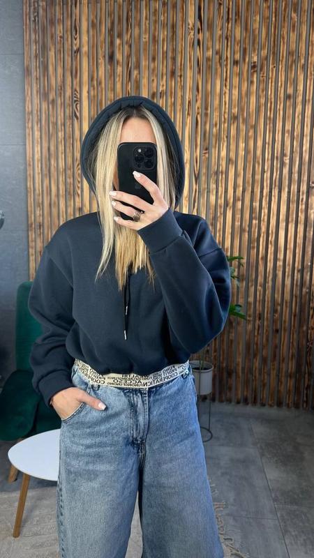 ⚡️NEW⚡️NEW⚡️NEW Вкорочена тепла кофта Мод.02 Ціна 550 гривень Тканина: Турецька трьохнитка на флісі! Тканина не кошлатиться! Розмір: 42-44; 46-48 Кольори: чорний, беж, графіт Подвійний капюшон! Фото реал!