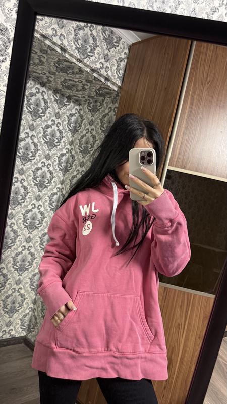 Подовжений худі , xs-s ,на фото одягнуто на xs,зріст 162 см , дуже теплий , важкий , нижче попи буде , стан гарний, дефектів немає, можливо колір не достатньо яскравий