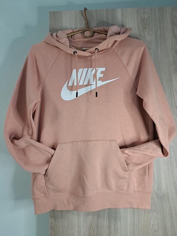 Зручне худі від Nike в трендовому пудровому кольорі. Підійде як для занять спортом, пробіжки так і для повсякденного носіння. Гарно сяде на розмір S. Має кишеню посередині, біле лого.