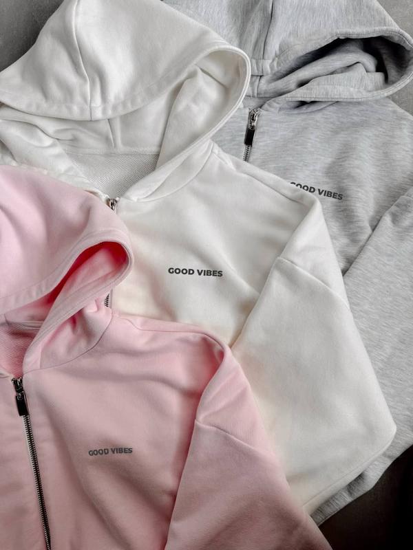 🩷Трендові худі GOOD VIBES Худі Мод. lu 1044 Тканина: петля Туреччина Розмір: oversize S-L Колір: білий, меланж, рожевий Худі з капюшоном "GOOD VIBES" для твоїх повсякденних образів. Якісна турецька петля — м’яка, приємна на дотик і довговічна. Oversize фасон забезпечує комфорт і свободу рухів. • Заміри: Довжина рукава від шиї: 72см Довжина по спинці: 38см ОГ: 108см