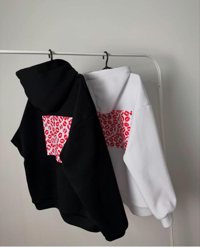 Артикул: 560-9NSBNLW7 Худі Мод. 180 Тканина: турецька тринитка на флісі Колір: білий, чорний Розмір: 42-48 Ціна: 950 Довжина худі 63 см. Рукав: 60 см. Ог до 115 см От до 100см.