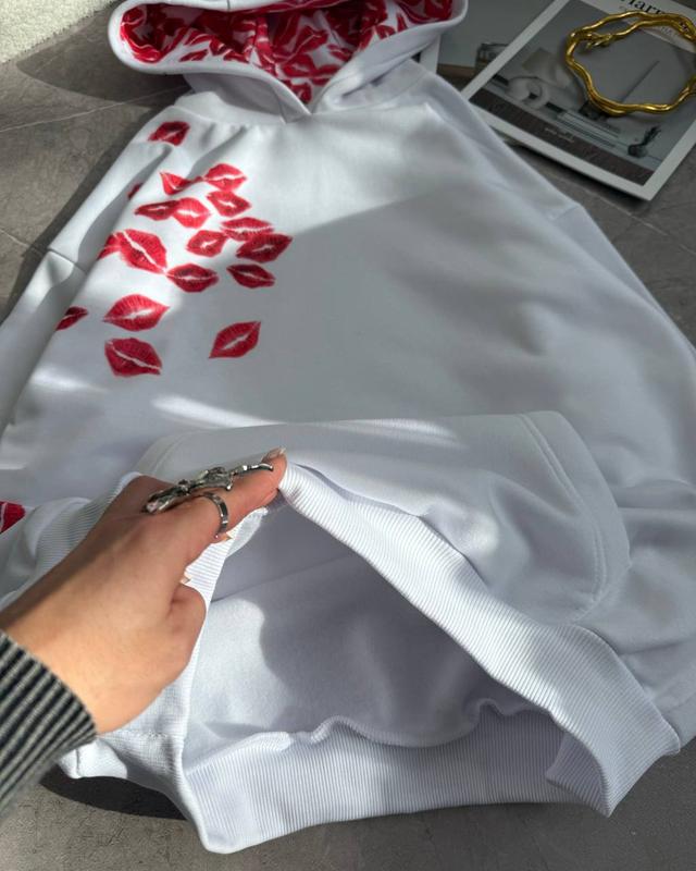 Худи унисекс “Kiss” (1154) 🔹 Модель: ro 235 🔹 Ткань: трехнитка на флисе + измельченная 🔹 Размер: 42-46 (оверсайз) 🔹 Цвет: белый Стильный унисекс худи с трендовым принтом “поцелуи” 💋 Мягкая, плотная трехнить на флисе обеспечивает комфорт и тепло, манжеты из рябины хорошо держат форму, а качественная накатка не трескается и не тускнеет 💎 Идеальный вариант для стильных образов на каждый день 🥰 📸 Фото реальное Артикул: ro 235 Код: 1154