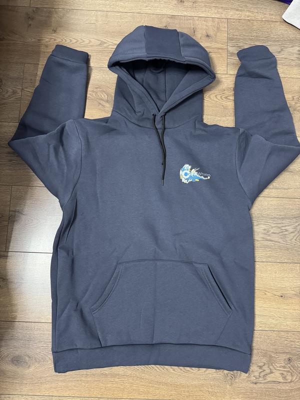 Худі унісекс з дуже гарним принтом кита на всю спину. Розмір L. Заміри: довжина: 77 см, ширина: 62 см. Дуже комфортне і надзвичайно тепле! Якість чудова - не кошлатиться і не вицвітає після носіння і прання.