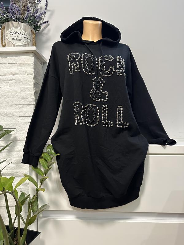 Стильне чорне худі з написом із бусінок Тканина бавовна Р.м-л Довжина87 Пог55 Бедра 58 Тягнеться