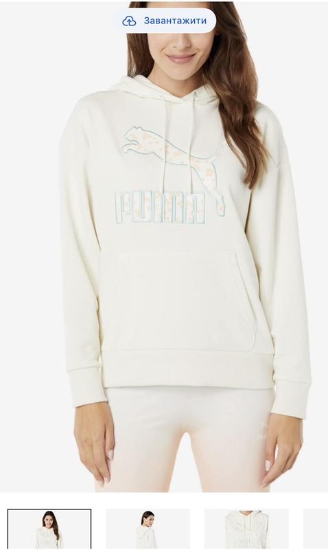 Худі PUMA ( оригінал)розмір L на розмір 48/50. НОГ-56 см, довжина по спинці-60см, трикотаж без підчосу, колір айворі.Логотип настрочений, не малюнок. Приємний на дотик трикотаж. Уважно дивіться на фактичні заміри, не довге
