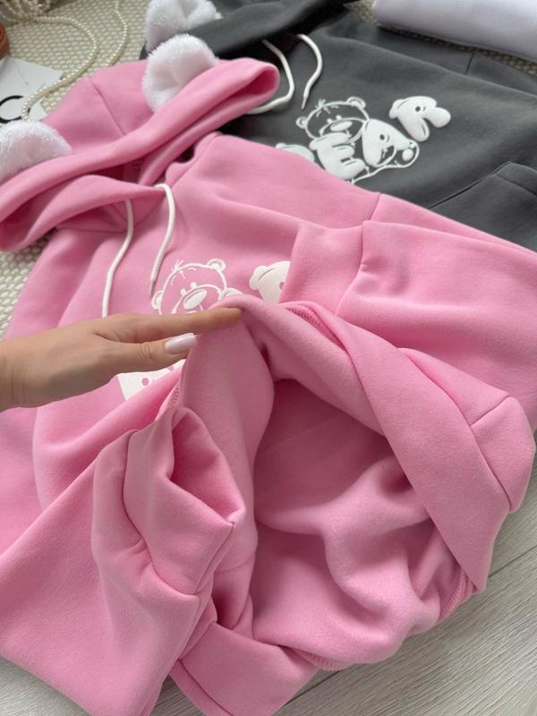 ФОТО РЕАЛ 🤩 🐻Худі мод:398 4939r Дропш Кольори: молоко, сірий, рожевий Універсал: 42-46 Тканина: Дуже якісна тринітка на флісі та мех. ✔️Дуже приємна до тіла ✔️Відмінної якості та пошиття Довжина виробу -70 см