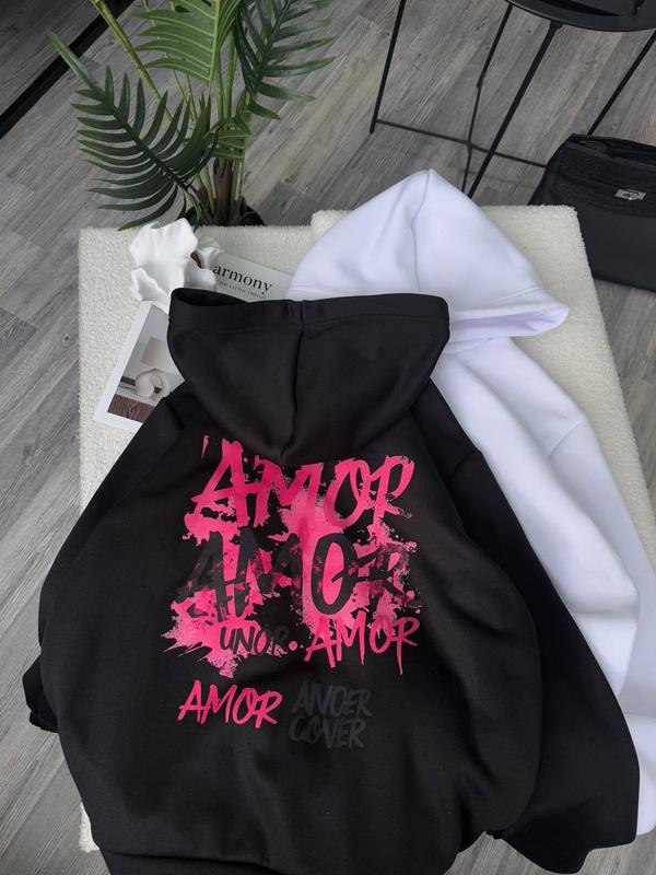 😎Худік ціна 699 😎Мод. 2770 😎Тканина: тринитка на флісі 😎Розмір: 42-46 😎Колір: чорний, білий 😎Якісна накатка 🔥 Стильне оверсайз худі “AMOR” — база з вибуховим рожево-чорним принтом для яскравих і впевнених! 💖 📏Заміри: Обхват грудей 118см Довжина від горла 67см Довжина рукава 65см