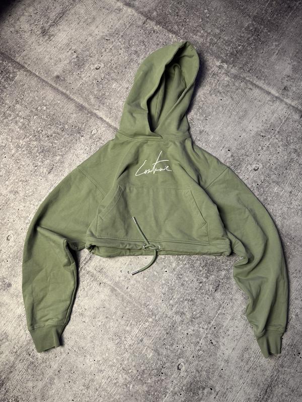 Плотне жіноче кроп худі в кольорі хакі. Розмір с