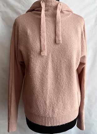 В'язаний худі, Primark ніжно-рожевого (пудрового) кольору. Виготовлений з м'якої пряжі, за текстурою нагадує альпаку або букле. Виготовлений з надм'якої суміші волокон, яка складається з акрилу, поліаміду, еластану для еластичності. Худі вільний, добре тягнеться, оверсайз крій з капюшоном, який регулюється широкими в'язаними шнурками в тон. Манжети і нижній край оформлені в'язкою в рубчик для кращого прилягання. Вказаний Розмір 2XS але гарно тягнеться, підійде і на М Заміри в «спокійномі стані» Довжина 58 см Напівобхват грудей 50 см Довжина рукава від горловини 71 см добре тягнеться орієнтуватися по замірах
