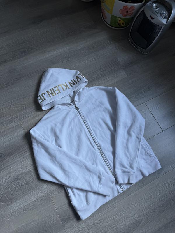 Зіп кофта Calvin Klein жіноча Оригінал Розмір S Бвлосніжна На капюшоні надпісь Calvin Klein великими літерами На флісі дуже тепла