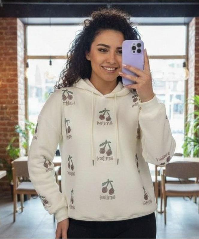Модне худі з акцентним принтом вишень, оздобленим дрібними блискучими деталями. Лаконічний дизайн поєднується з максимальним комфортом: вільний фасон, довгі рукави та капюшон. Модель : 2519 Розміри : XL(42),2XL(44), 3XL(46),4XL(48) Ціна : 779грн Тканина: високоякісна турецька тринить на флісі  Кольори: білий ,чорний, коричневий,меланж, графіт Заміри : 💛Обхват грудей (42р)-110см,(44р)-114см, (46р)-120см,(48р)-124см 💛Обхват талії (42р)-100см,(44р)-114см (46р)-118см,(48р)-122см 💛Довжина (42р)-66см(44р)-67см, (46р)-69см,(48р)-68см 💛Рукав від горловини (42р)-73см (44р)-74см (46р)-76см,(48р)-77см
