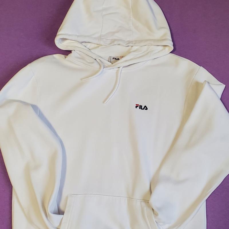 Колір білосніжний,фото не передає. ОГ-54 Довжина рукава від плеча 65. Довжина виробу 65 Худі Fila стандартного крою, виготовлене з органічної бавовняної суміші французької махрової тканини. Це класичне худі має кишеню-кенгуру, ребристі манжети та регульований капюшон. На грудях нанесено невеликий вишитий лінійний логотип Fila.