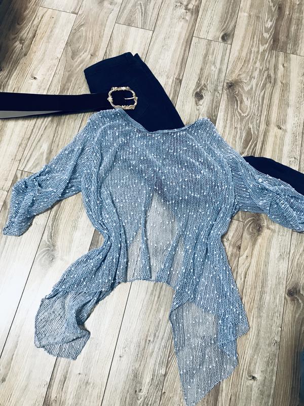 Дуже гарна кофтинка - накидка, легка, повітряна. Ззаду разрезик, рукавчики з спущений плечиком.