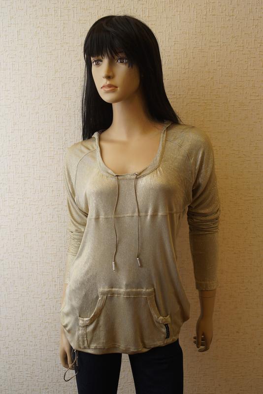 Оригинальное облегчённое худи от итальянского бренда RICHMOND DENIM золотого цвета в блестках. Очень стильная вещь! Состав: 100% вискоза. Размер: 44 (S и S /M) Цена: 999 грн