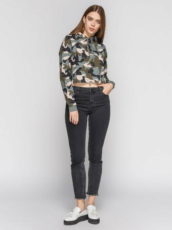 Укороченный худи из футера с заниженной линией плеча и трикотажной резинкой на рукавах свободного кроя