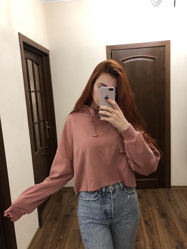 Укорочений худі з капюшоном рожевого кольору з необробленим краєм. На рахунок ціни можна домовитися