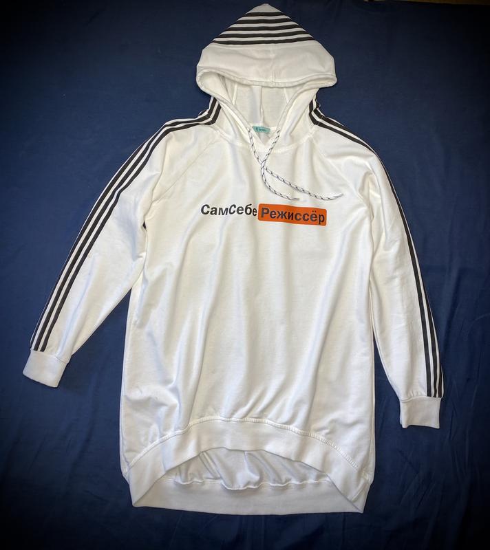 Трикотаж двунітка. Недоліків і слідів шкарпетки немає зовсім. Білий. «цікава» напис на грудях «сам собі режисер» } Рукав реглан, з 5ю чорними смугами ,які переходять на капюшон {затягується шнурком}. Манжет і низ худі, трикотажна гумка. Виміри в спокійному стані: ▪️довжина 67см/ 80см ззаду ▪️рукав від горловини 72см ▪️капюшон глибина 30см ▪️пог 55см Напис рр. 3.5/30см Відповім на ваші питання Відправлю зручним для Вас способом Накладеним - передоплата