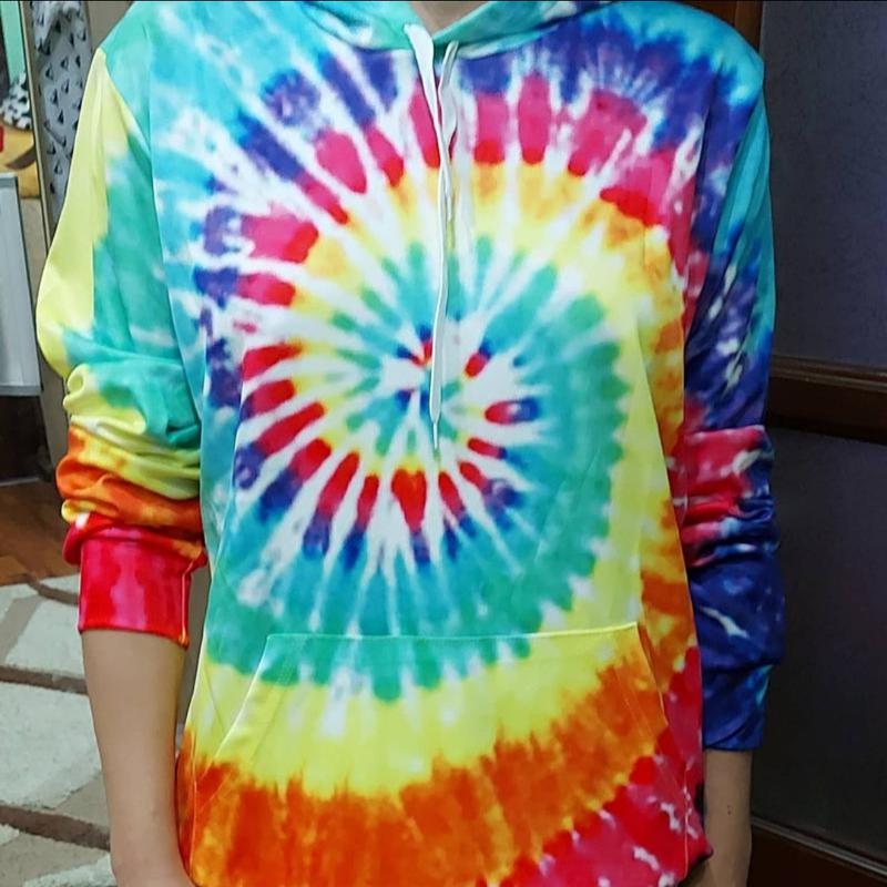 Яркое и стильное худи в стиле тайдай. унисекс Размер пишут XL, но можно как оверсайз Ширина 114 Длина 71 Рукав 69 Полиестр в наличии 1 шт