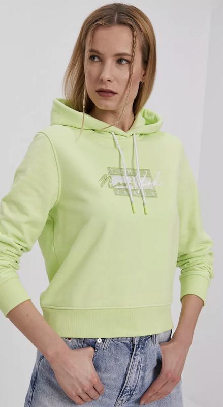 - Прямий фасон. - М'яка внутрішня частина. - Капюшон зі стягуванням. - Довгий рукав. - Грубий еластичний трикотаж. - Модель з аплікацією. - Оздоблення у вигляді стяжки. - Довжина рукава: 61 cm. - Довжина: 53 cm. - Ширина під пахвами: 52 cm. - Параметри вказані для розміру: S. Склад: 56% Бавовна, 44% Поліестер