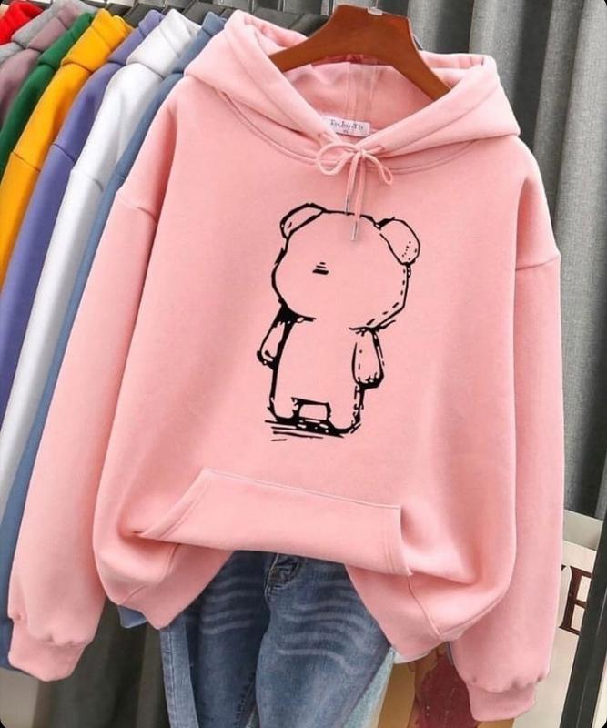 ▪Худі жіночий на флісі з капюшоном «Ведмедик» Розмір 42-46 Тканина - трехнить фліс Колір - блакитний білий рожевий чорний джинс бузок Жіночий батник з капюшоном ідеально підходить для щоденного використання, виглядає лаконічно і стильно.