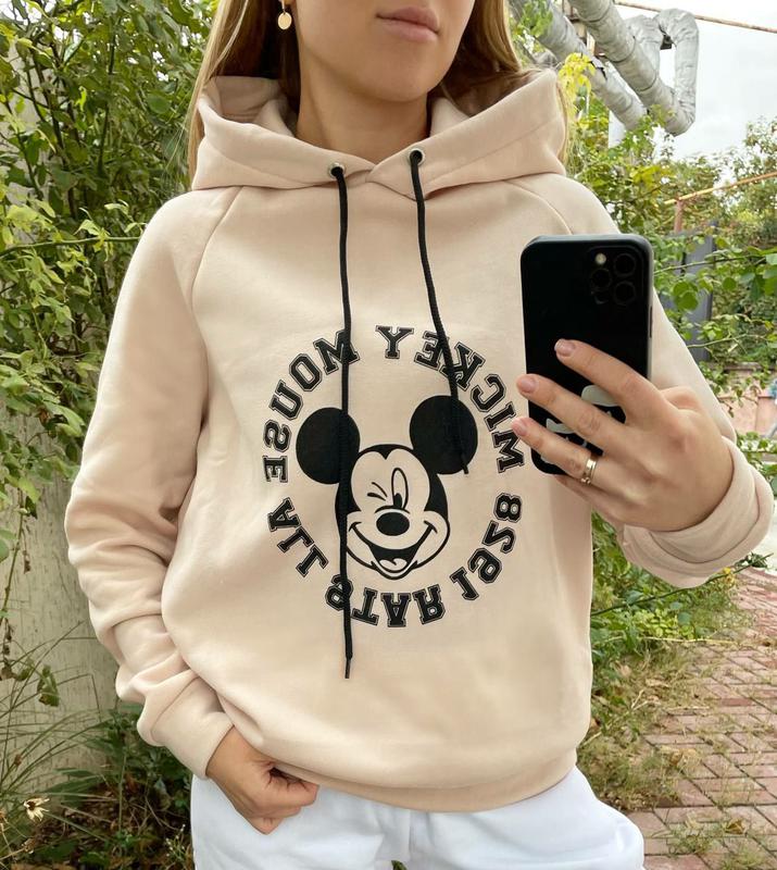 Модний зимовий худі «Міки» #87 на флісі з капюшоном Розмір 42-46 Тканина - трехнить фліс Колір - малина беж олива фрез лило Жіночий теплий худі на флісі з капюшоном яскравих кольорів. Фасон - oversize Глибокий капюшон, зручний фасон зі шнурком на люверсах. Світшот на манжетах. Яскравий стильний накат високої якості.