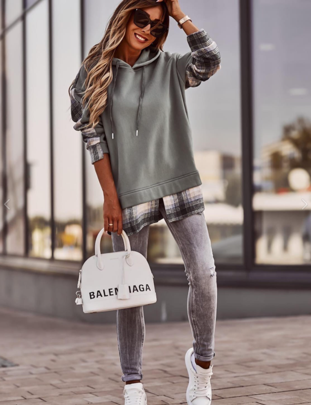 Худи Модель 706 Размеры -42-44, 46-48, 50-52, 54-56 Ткань- турецкий кашемир на флисе Цвета и размеры : Цвет бежевый: в наличии размер 42, 46, 54 Цвет розовый: в наличии размер 42 Цвет лаванда: в наличии размер 42, 46 Цвет оливка: в наличии размер 42, 46, 50 Цвет черный: в наличии размер 42, 46 Свободный худи, длинный рукав на манжете, глубокий капюшон на канате; рукава, спинка и вставка спереди из кашемира в клеточку ; передняя часть и капюшон из трехнитке. ПАРАМЕТРЫ по внешнему шву ИЗДЕЛИЯ: размер 42-44: Обхват груди 116 см, Обхват талии 112 см, Обхват бедер 110 см, рукав от шва 55 см, длина по спинке 75 см; размер 46-48: Обхват груди 118 см, Обхват талии 120 см, Обхват бедер 118 см, рукав от шва 55 см, длина по спинке 75 см размер 50-52: Обхват груди 126 см, Обхват талии 126 см, Обхват бедер 124 см, рукав от шва 56 см, длина по спинке 75 см размер 54-56: Обхват груди 130 см, Обхват талии 130 см, Обхват бедер 128 см, рукав от шва 58 см, длина по спинке 76 см