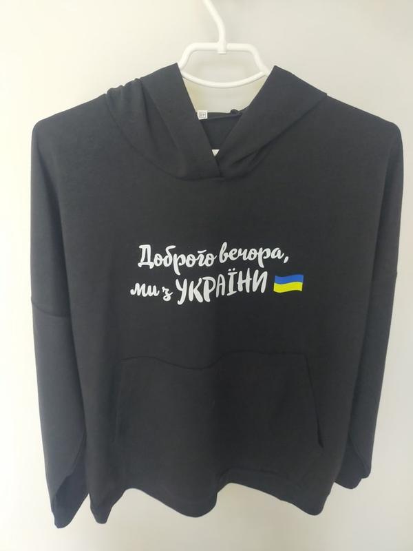 Худі 💙💛 арт. bb. 386 Худі з написом на грудях, доповнено капюшоном і кишенею-кенгуру Тканина: двунітка Розмір: 42-46, 48-50, 52-54, 56-58 Колір: джинс, жовтий, капучіно, чорний Ціна 590 грн
